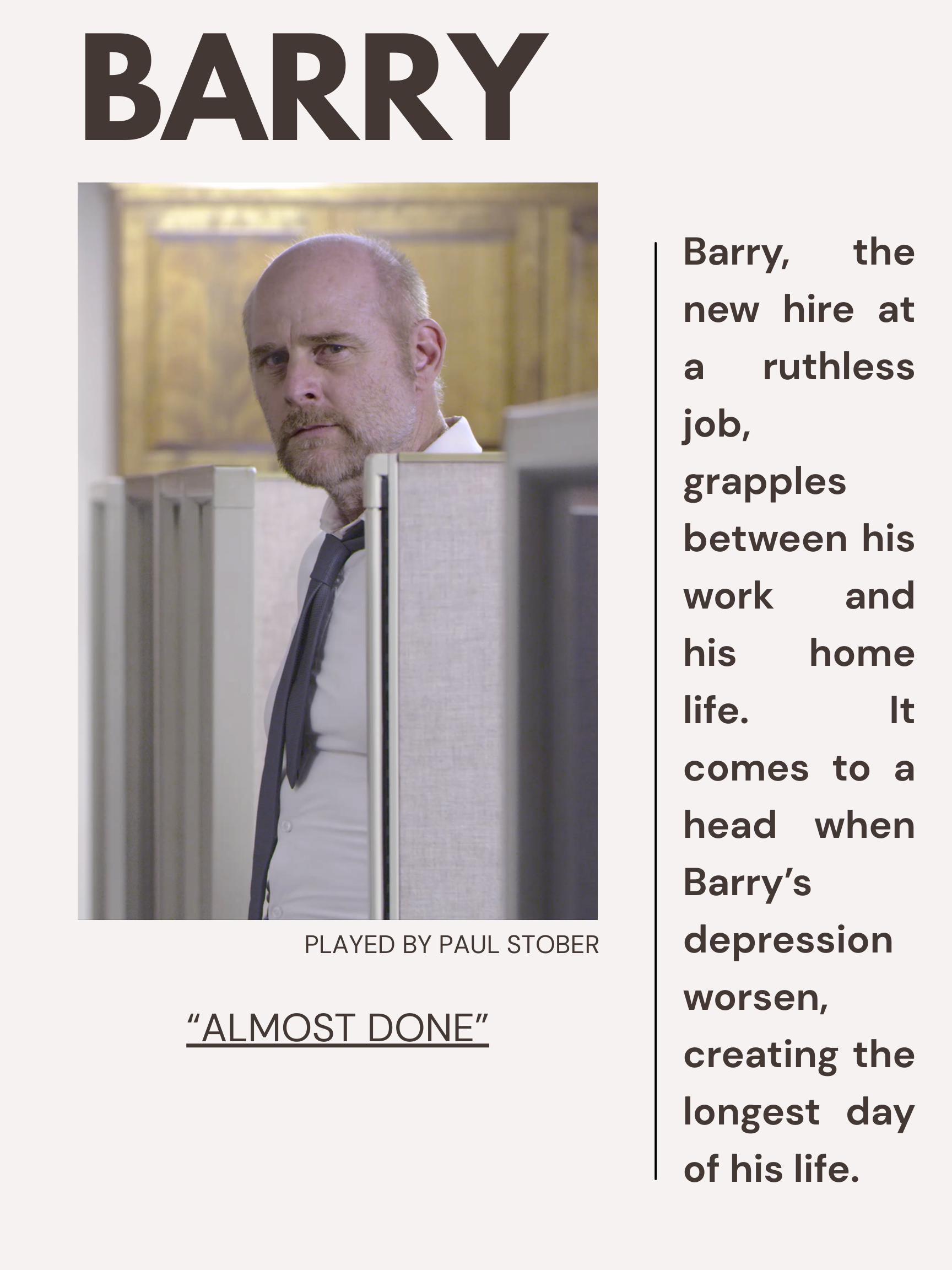 Writer/Director Dillon Black had been wanting to tell a story about depression for years. His work previously touched on themes but he felt it was time for those ideas to mature. Thus “What’s Left Of Barry” was born. Inspired by the likes of Kubrick and Iñárritu, this film was meant as an experience into the darkest day of a broken mans life.