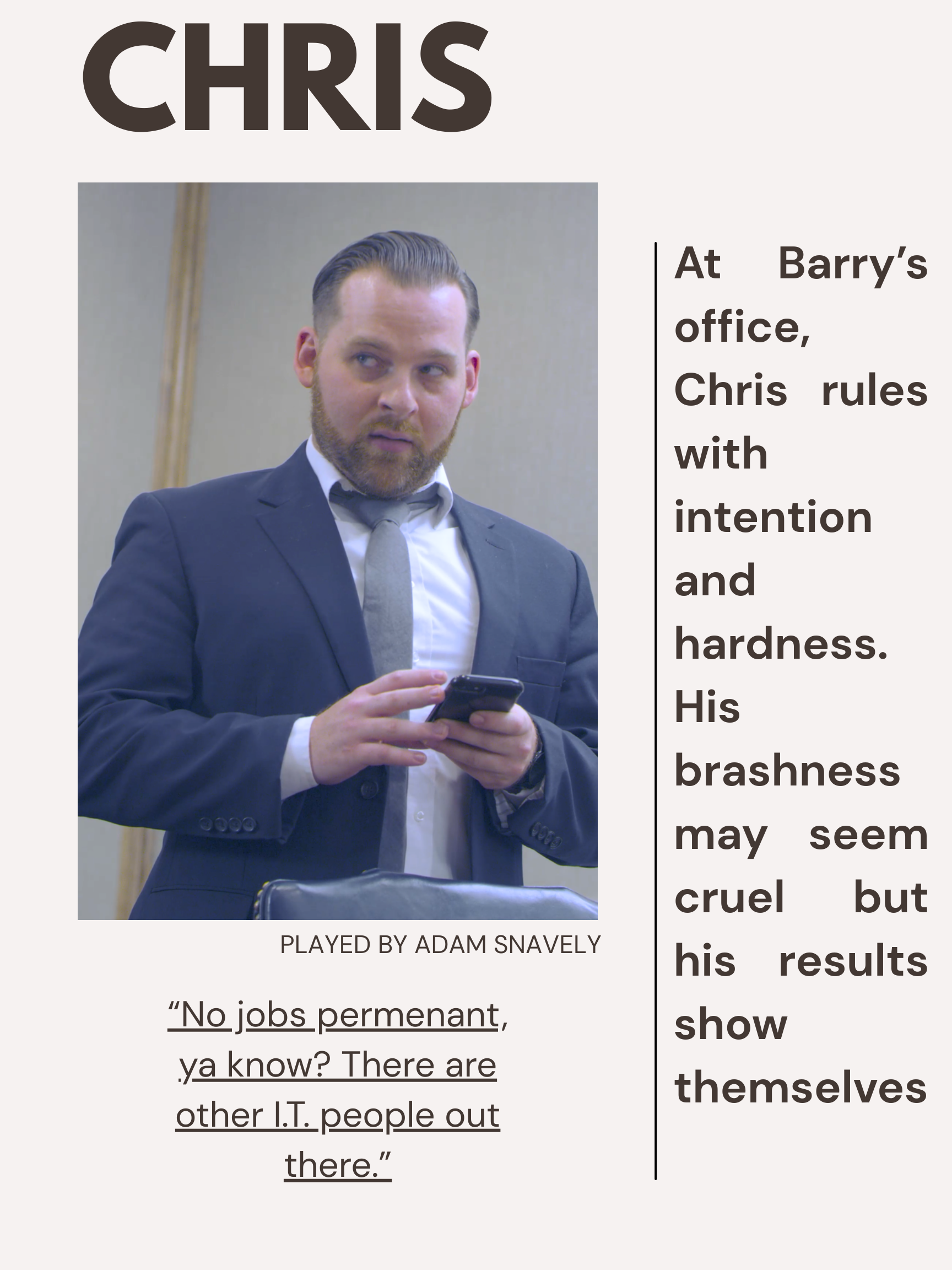 He enters into our story left only with that venomous job, a selfish boss and now must survive the longest day of his life.